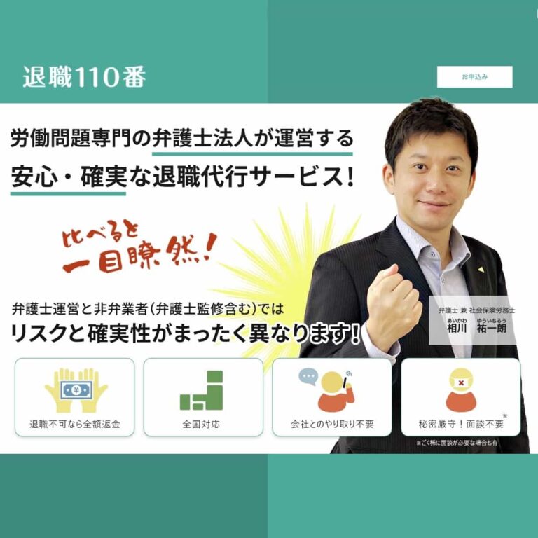 弁護士法人みやびは、多数の退職代行の中でも高い評価を得ています。弁護士が手続きを担当し、法的なサポートも充実しています。特に、退職理由に関する相談も無料で受け付けており、的確なアドバイスを提供してくれます。料金も業界水準内であり、安心して利用することができます。